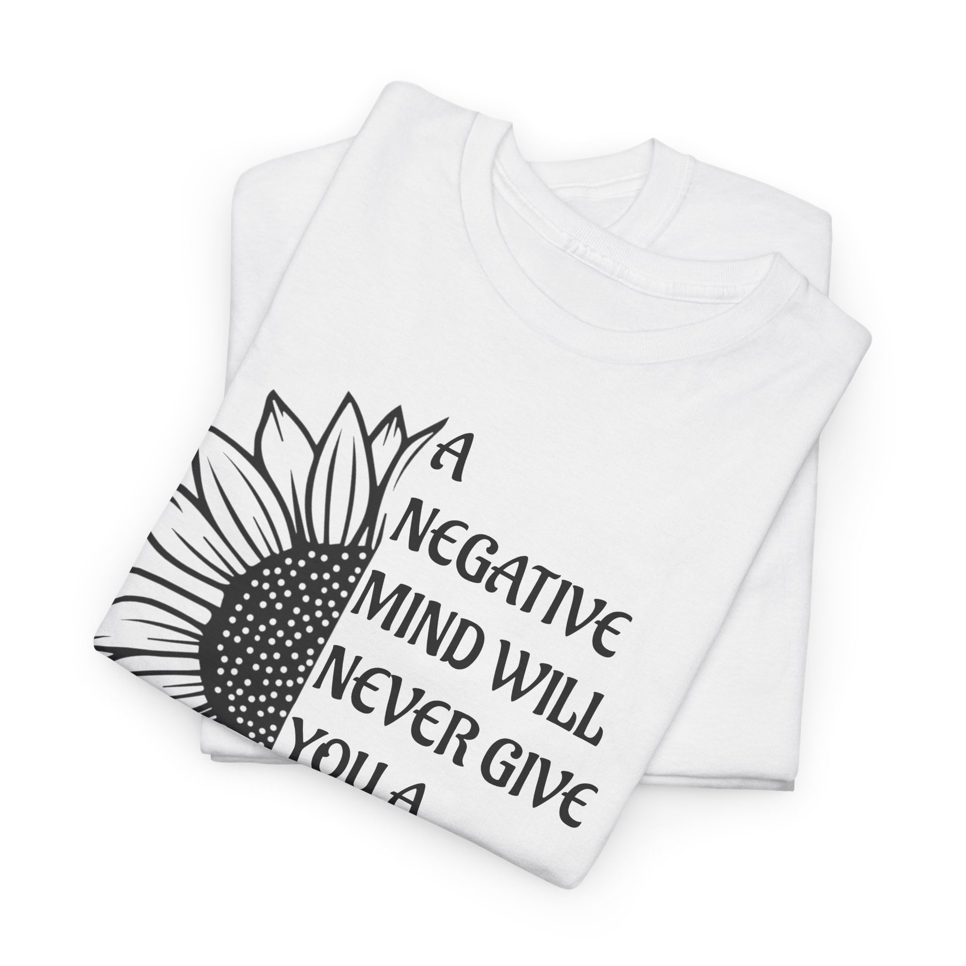 Motivational Quote T-Shirt - A Negative Mind Will Never Give You a Positive Life. This T-Shirt features a powerful message, 'A NEGATIVE MIND WILL NEVER GIVE YOU A POSITIVE LIFE' that inspires positivity and motivation. It is perfect for individuals looking to spread a positive message and mindset. Ideal for everyday wear or as a gift for friends and family. Relevant for occasions like birthdays, holidays, and motivational events.