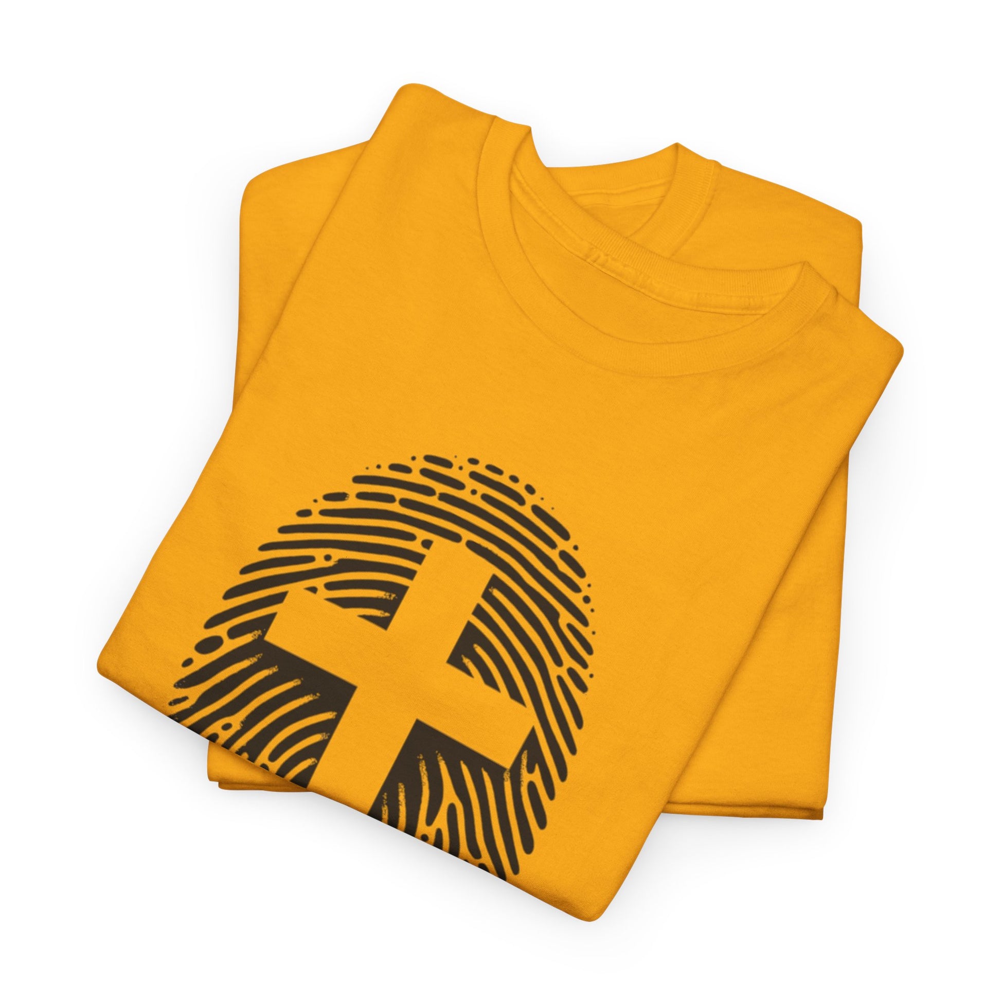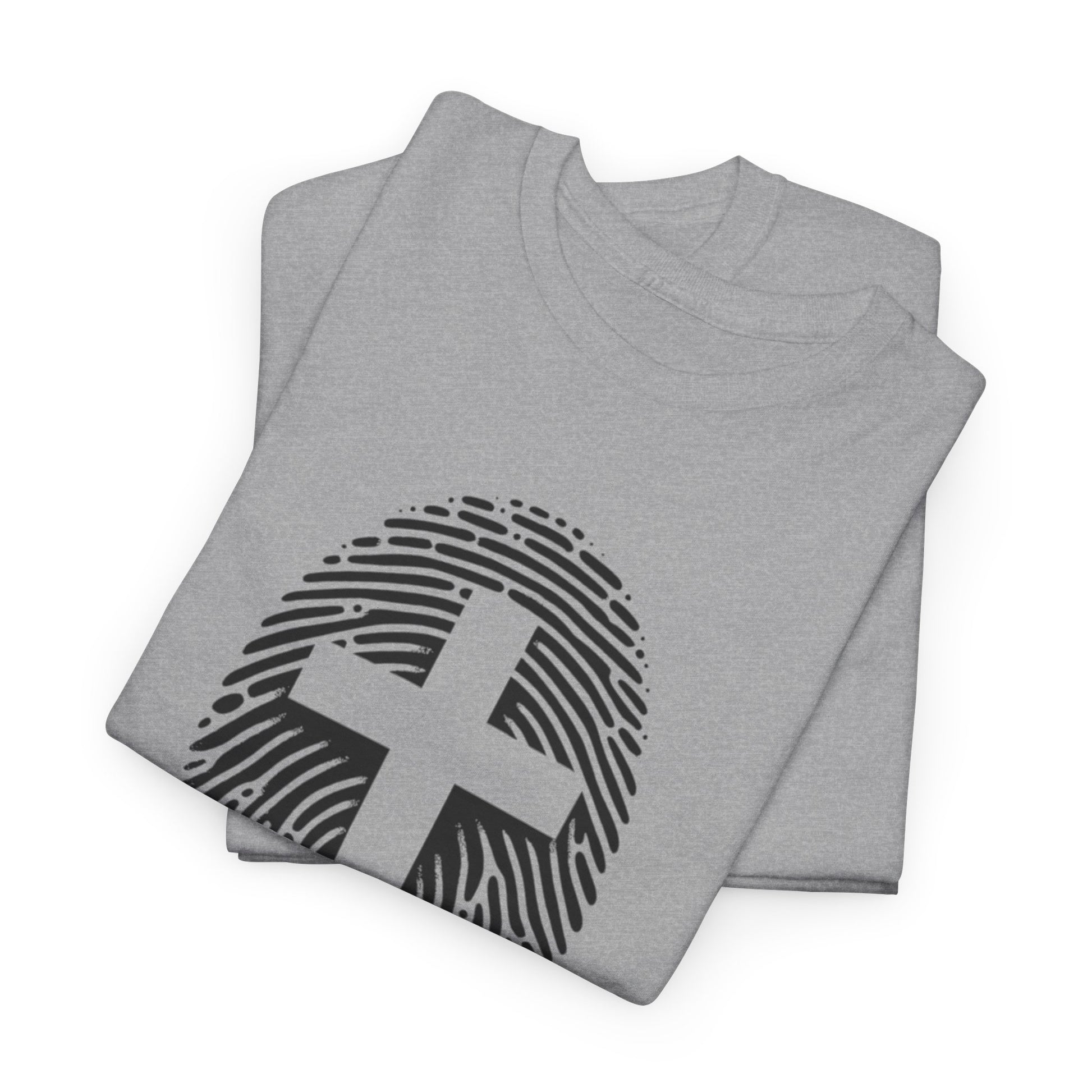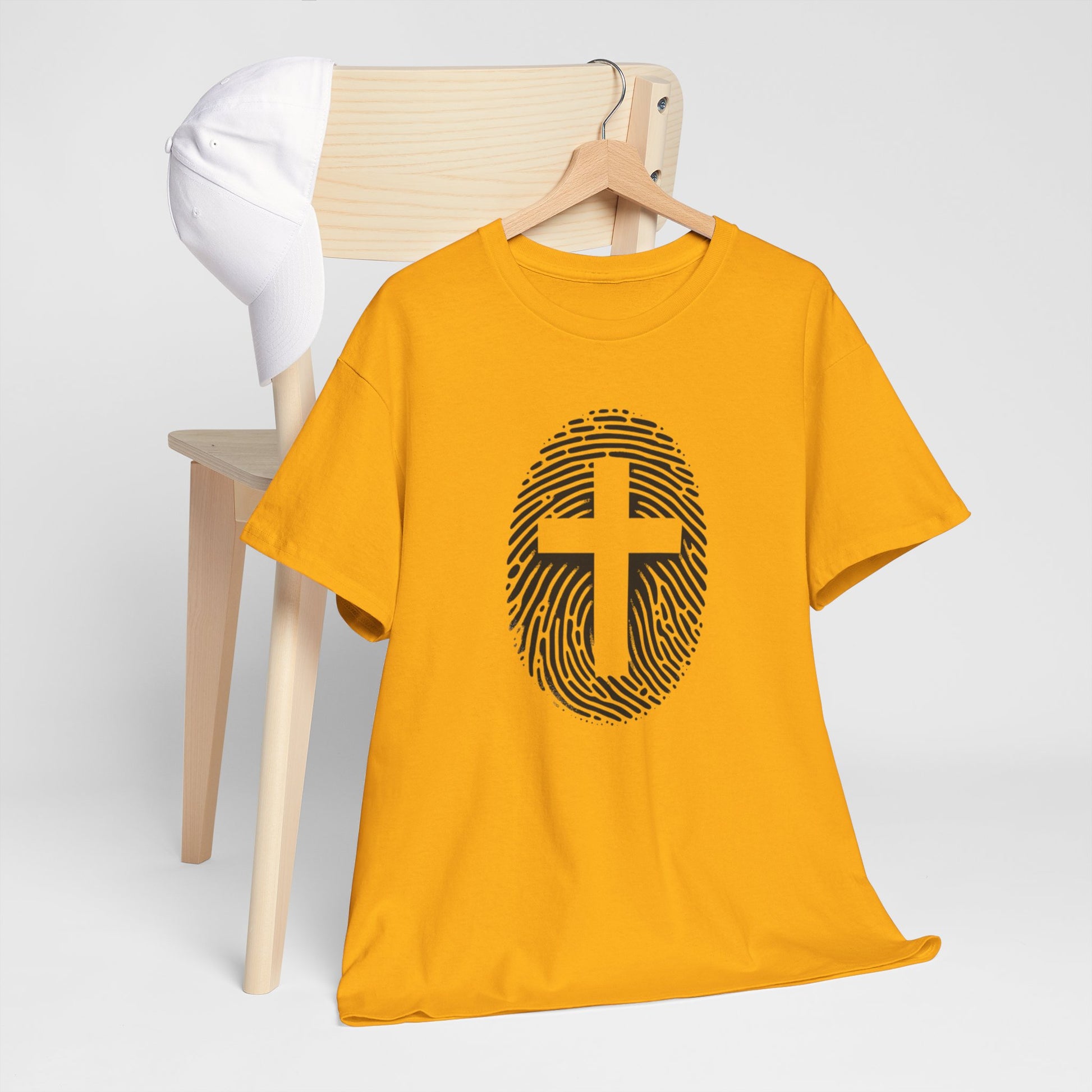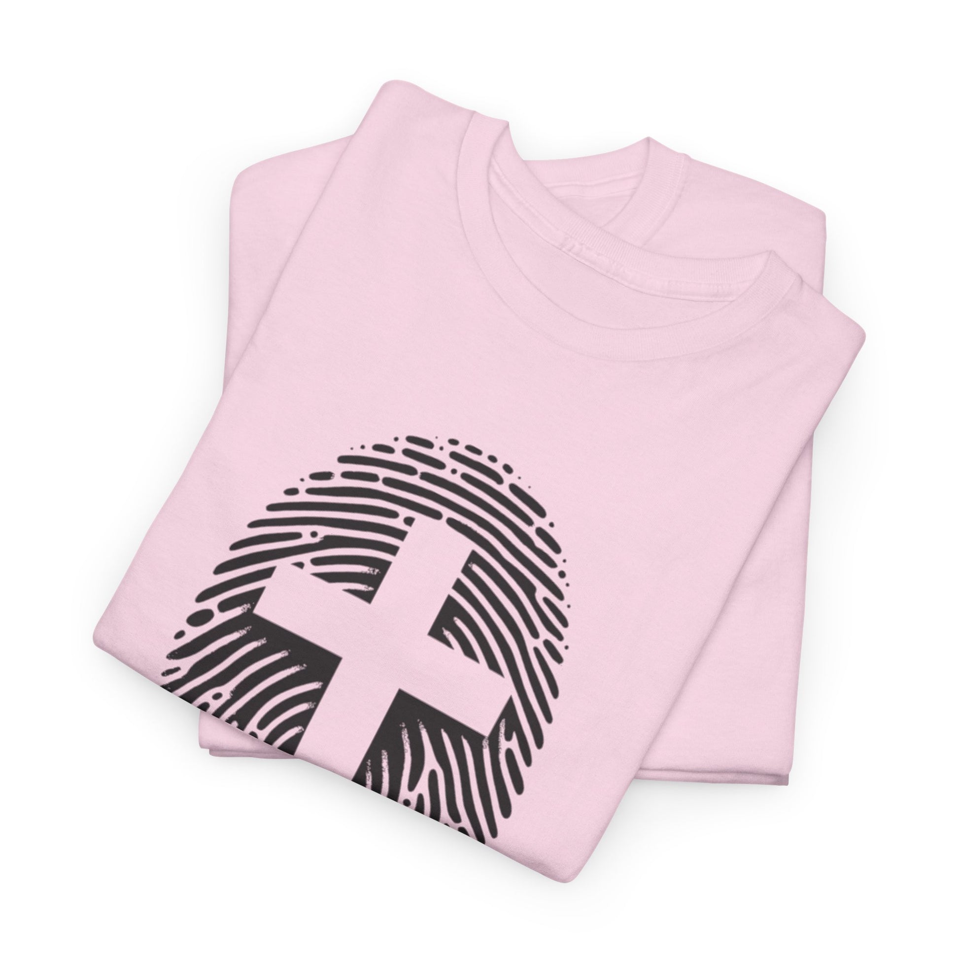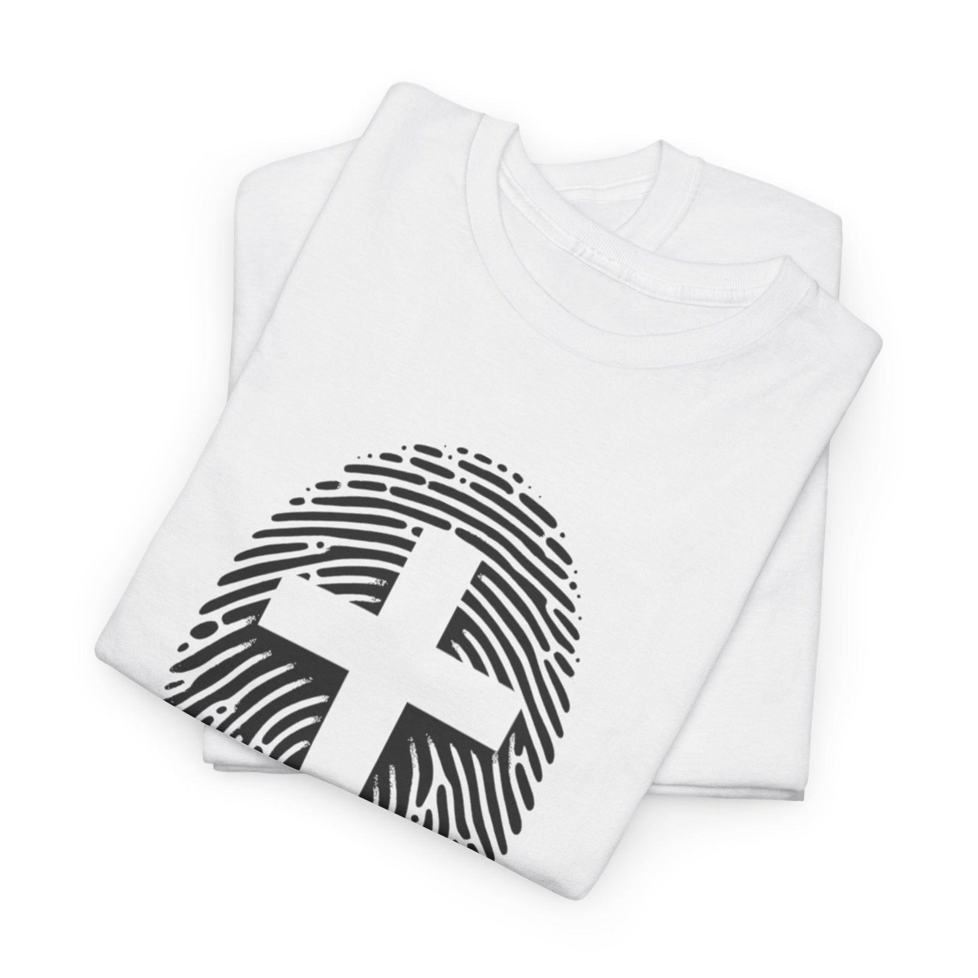 A unique white Finger Print Christ identity T-Shirt that provides a sense of spirituality and individuality. Perfect for those looking to express their faith in a modern way. Ideal for casual wear or as a statement piece for religious gatherings and events.