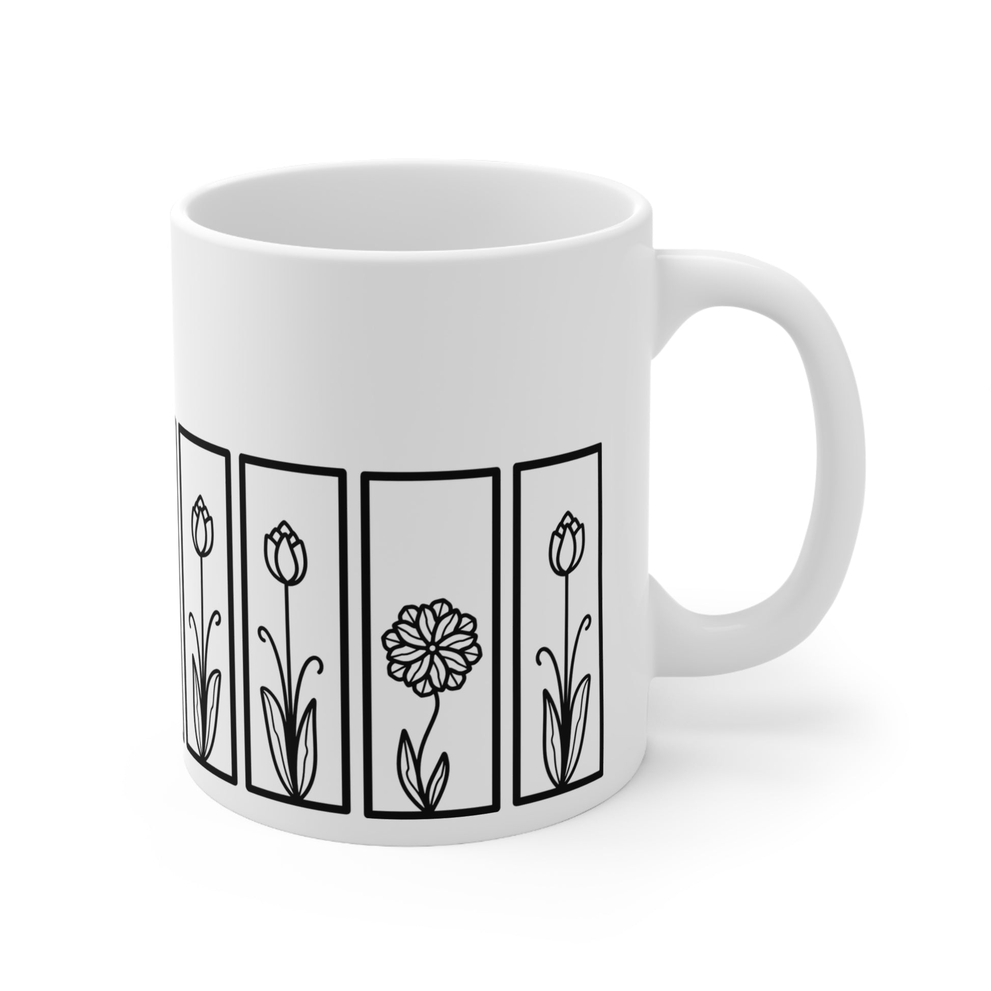 Tulip Botanical Floral Ceramic Coffee White Mug