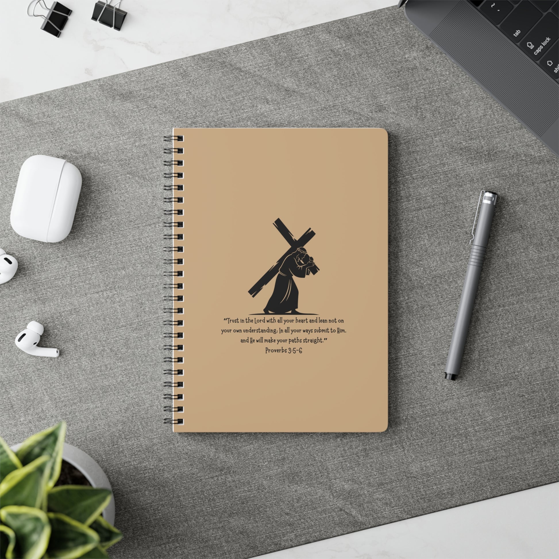 A vibrant and inspirational journal notebook featuring the quote "Trust in the LORD with all your heart and lean not on your own understanding; in all your ways submit to him, and he will make your paths straight Proverbs 3:5-6." Perfect for those seeking motivation and guidance in their daily life. Ideal for religious individuals, Christians, and those looking for a meaningful gift for birthdays, Christmas, and Easter.