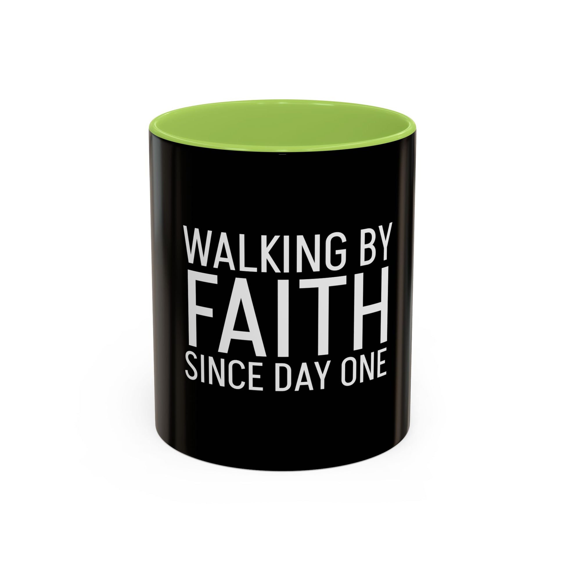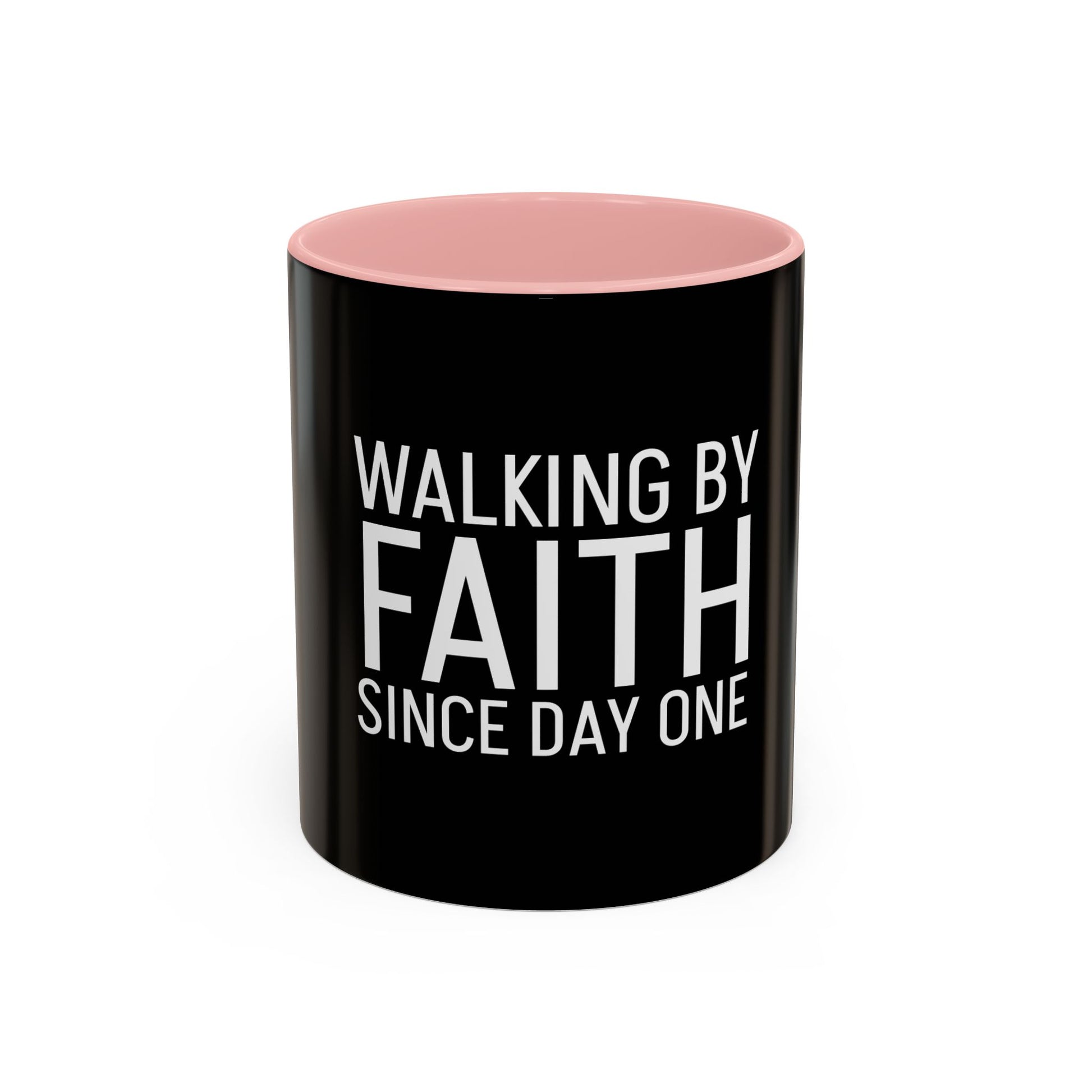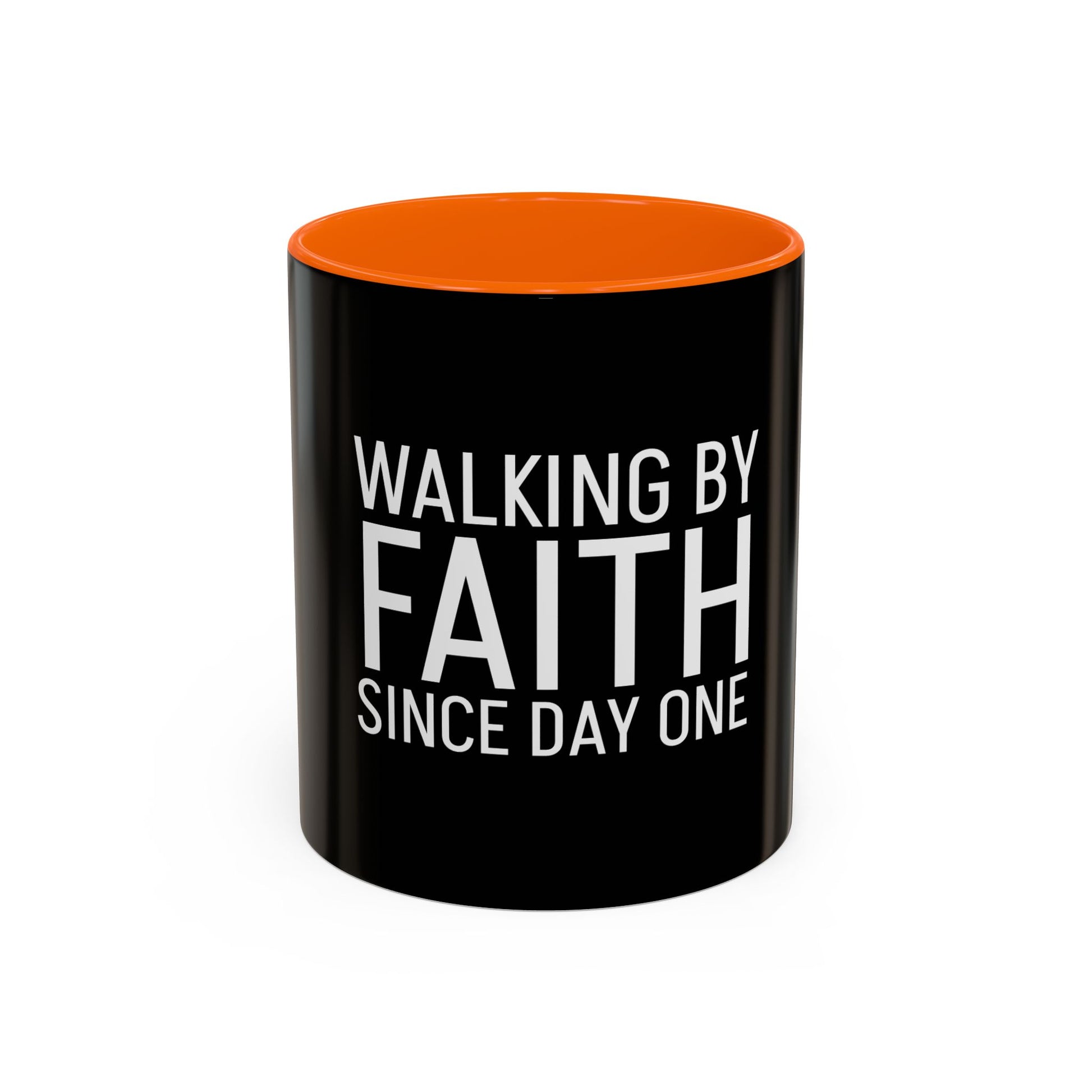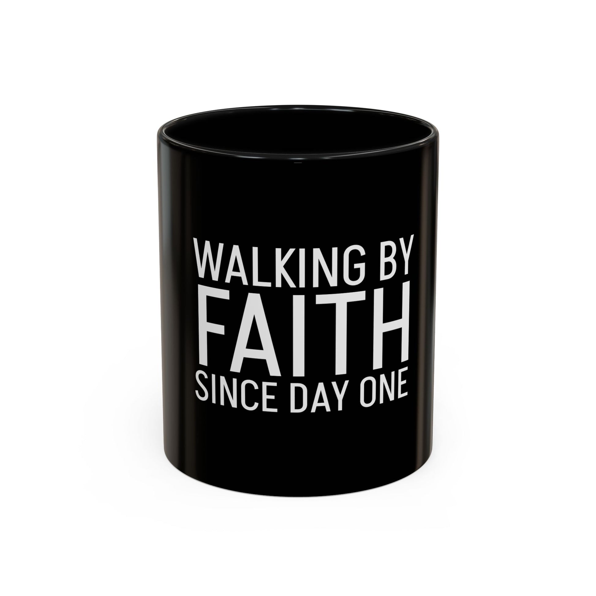 Walking by Faith Since Day One - Accent Coffee Mug, Black