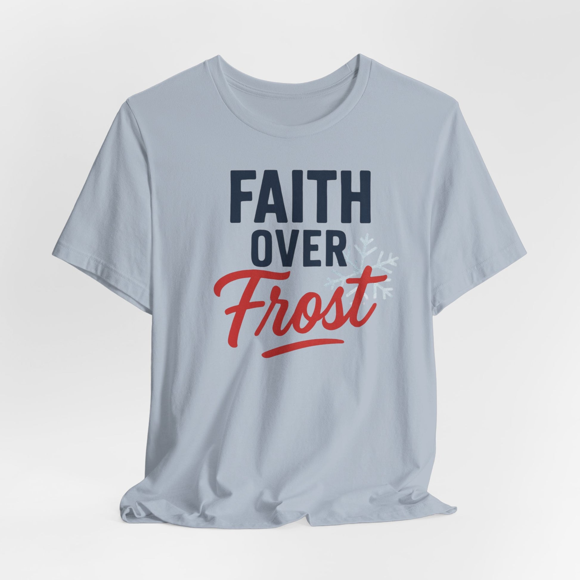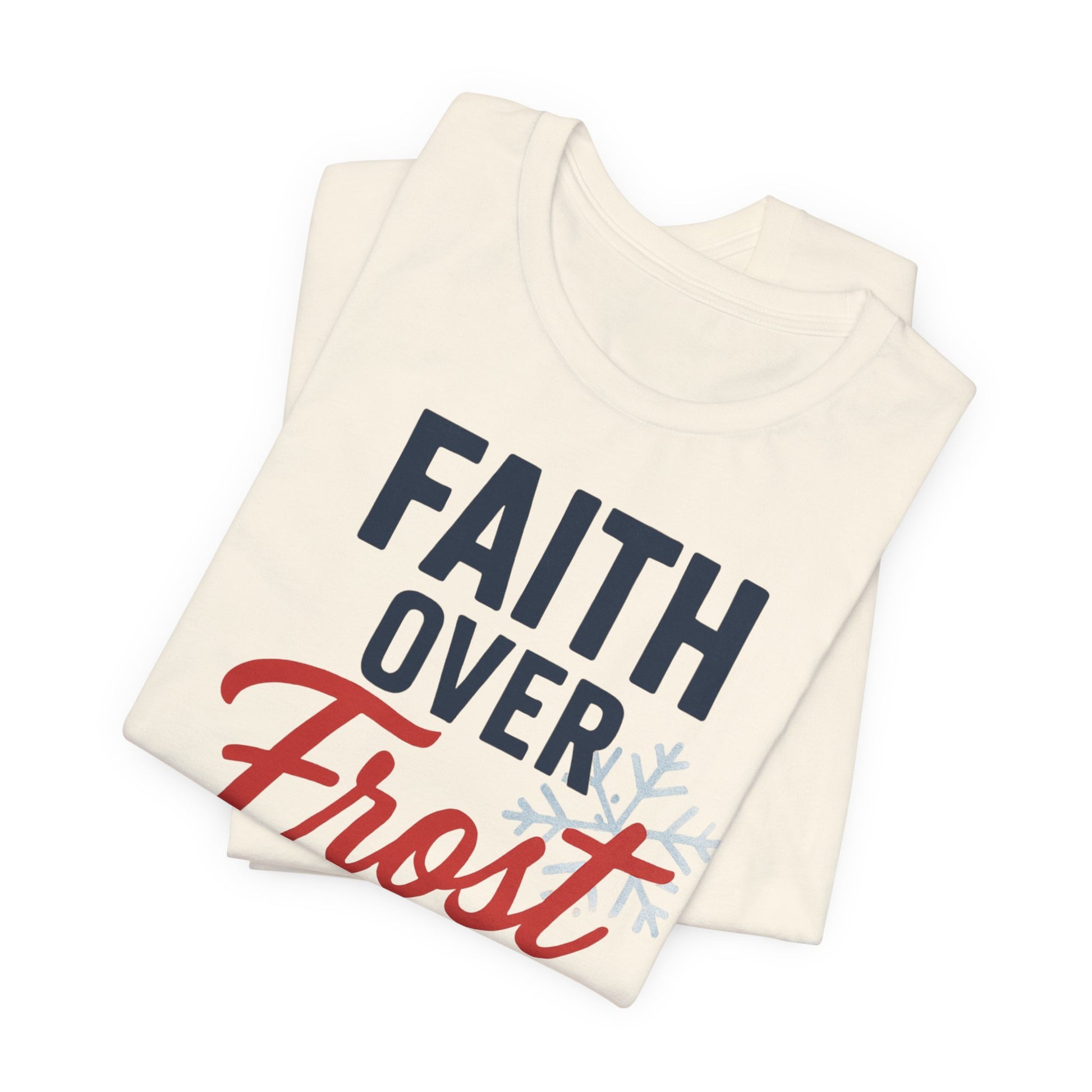 This Faith Over Frost tee is a soft, breathable staple that feels like a quiet reminder you can wear. Lightweight Airlume cotton sits close to the skin without feeling stiff. The ribbed crew neck and retail fit give it a tidy silhouette that layers easily under jackets or over flannels.
