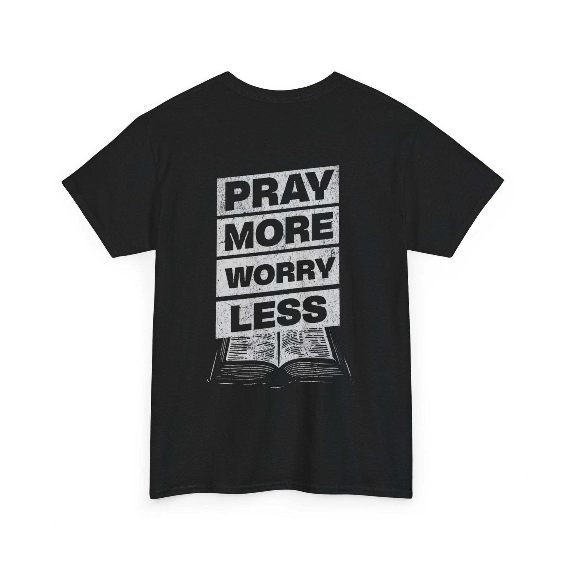 🙏 Keep your focus on God with our Pray More Worry Less T-shirt. Designed with bold typography and a clean, faith-forward style, this tee is a daily reminder to surrender anxiety and trust in the power of prayer.
