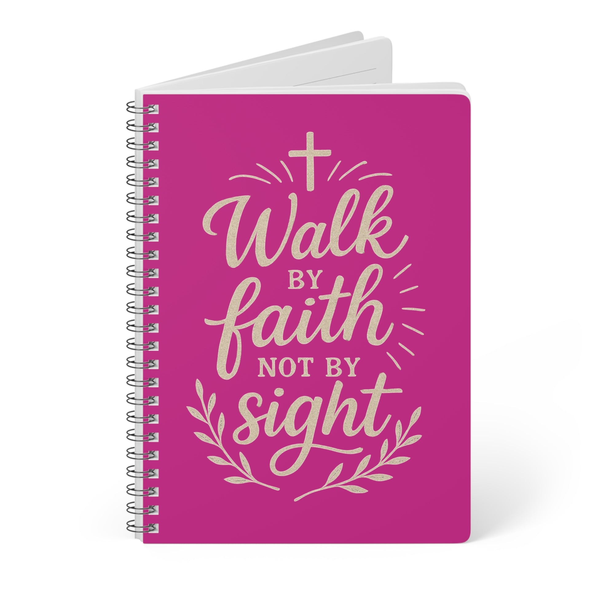 Walk by Faith Not By Fear Journal Notebook - Pink is perfect for those who love to jot down their thoughts and prayers. The vibrant colours and glossy finish give off a peaceful and serene vibe, making it ideal for meditation and reflection.
