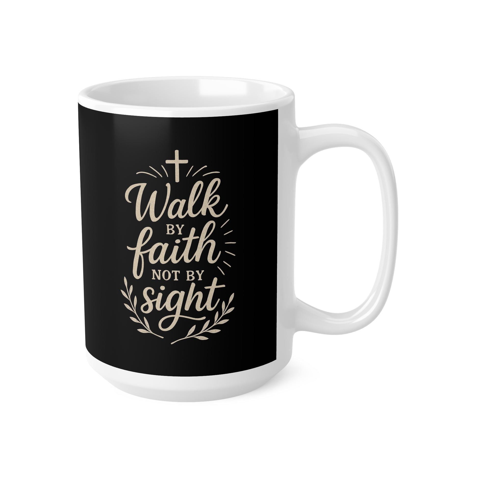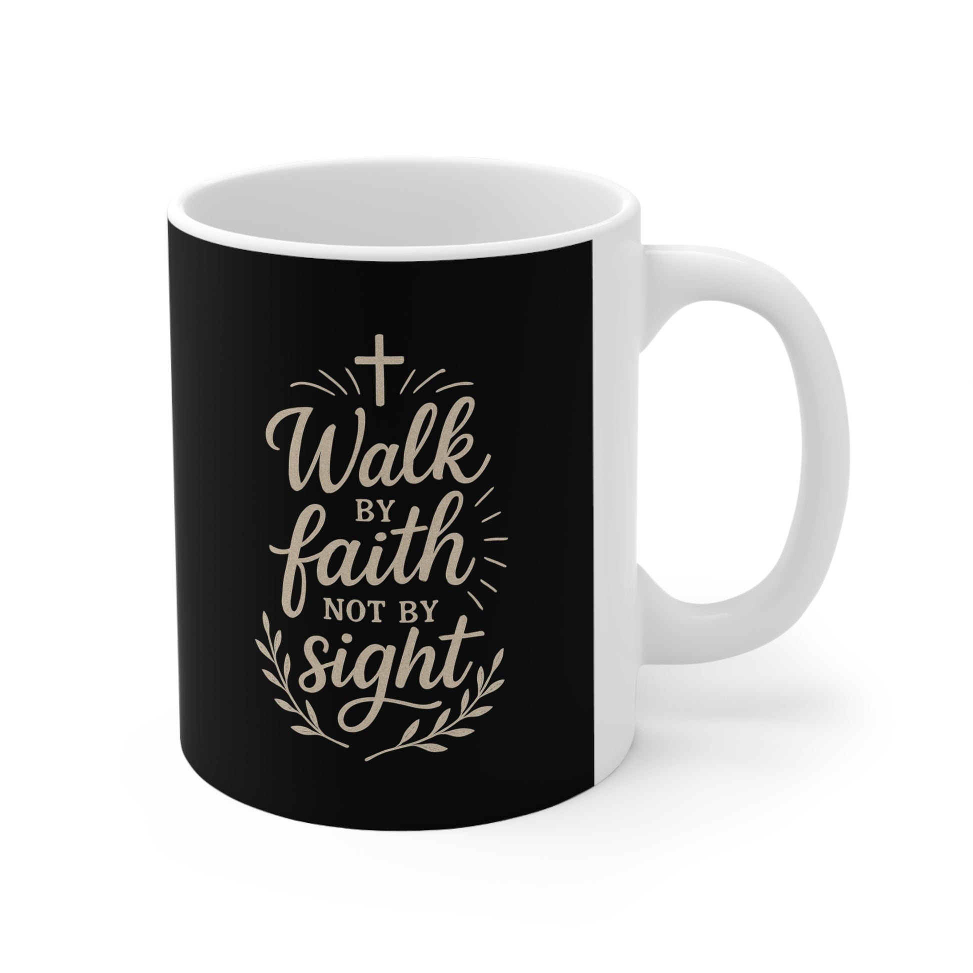 Walk By Faith Not By Sight Ceramic Coffee Cups - 11oz & 15oz, Mug = Black